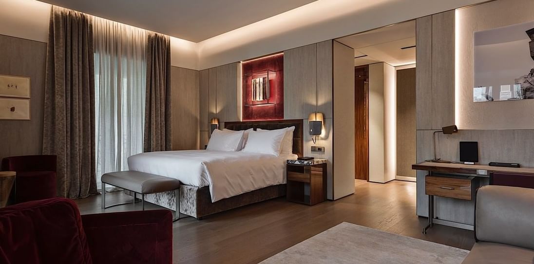 Per chi cerca discrezione e intimità, la Deluxe Suite 5 è la scelta più appropriata. Un perfetto angolo di relax e concentrazione a due passi dalla mondanità. Zona notte e zona giorno sono discretamente separate da…