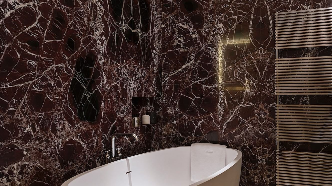 Roma ai tuoi piedi! Tra le più ampie ed accoglienti, la Palazzo Suite 1 regala un'esperienza romana unica: il privilegio di una vista mozzafiato su Trinità dei Monti da godere distesi sul confortevole letto matrimoniale. Dotata di un salotto elegantemente rifinito, di una scrivania funzionale e di una grande cabina armadio, tutti disegnati ad hoc e realizzati con materiali italiani d'eccellenza, questa Suite mette immediatamente gli ospiti a proprio agio, come a casa. Alle pareti un focus sull'heritage di FENDI, le tavolette di lavorazione realizzate dallo storico in-house atelier di pellicceria della Maison e le stampe fotografiche al platino delle più spettacolari fontane romane interpretate dal sensibile obiettivo di Karl Lagerfeld. Il rituale del bagno è lussuoso: nell'ampia vasca discretamente appartata fronte finestra oppure nella doccia walking through rivestita di squisito marmo rosso Levanto. Tocco haute couture per biancheria e toiletry curate da FENDI Casa: lenzuola in raso di cotone Makò mercerizzato assicurano una notte e un risveglio da sogno, soffici spugne in filato ritorto sono la coccola ideale dopo l'inebriante toelette con prodotti Diptyque.